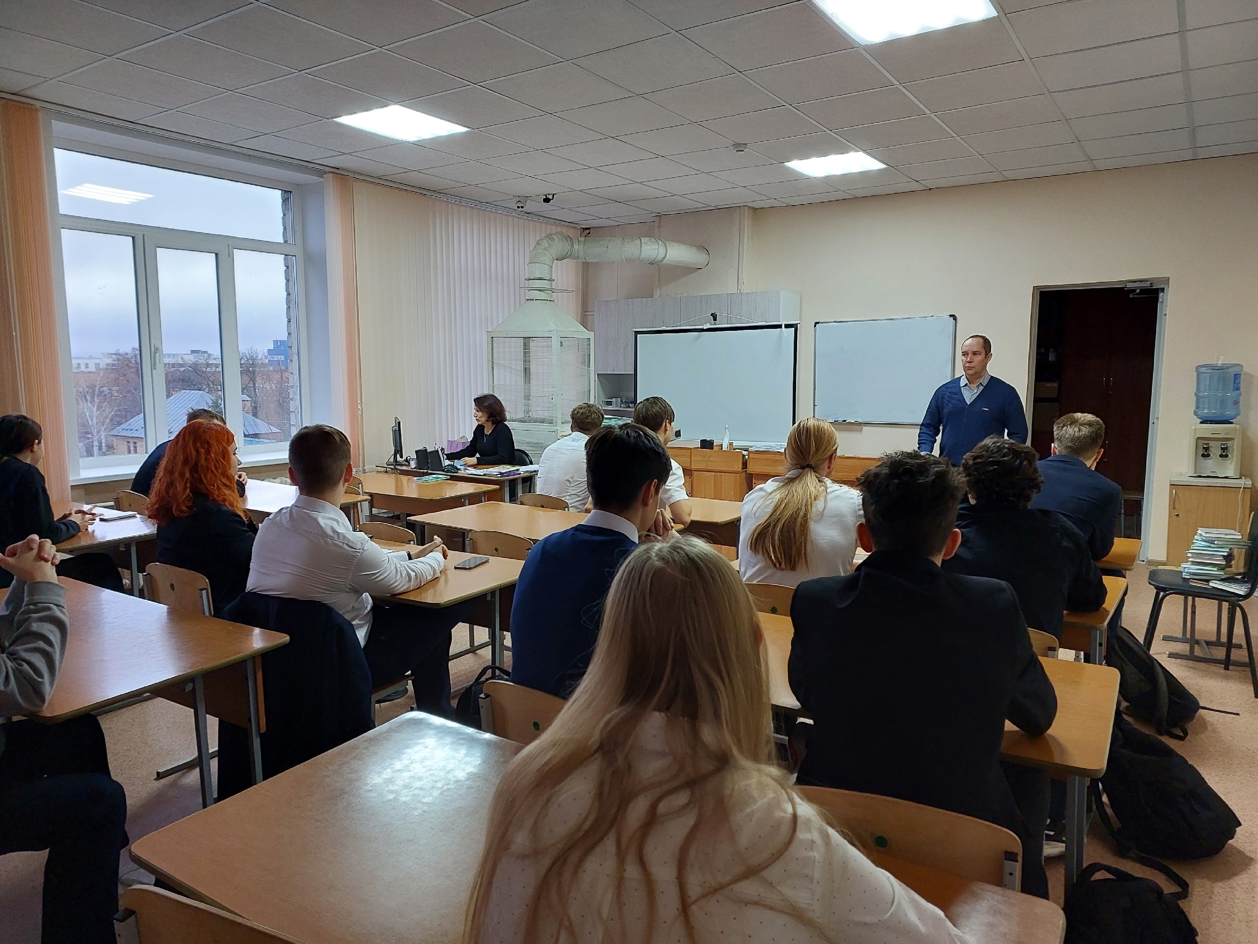 10 ноября преподаватели кафедры МОиПЭВМ Такташкин Д.В. и Дзюба Е.А. посетили среднюю общеобразовательную школу № 7 имени Виталия Ивановича Лебедева с профориентационной встрече встречей с учащимися 11 классов.